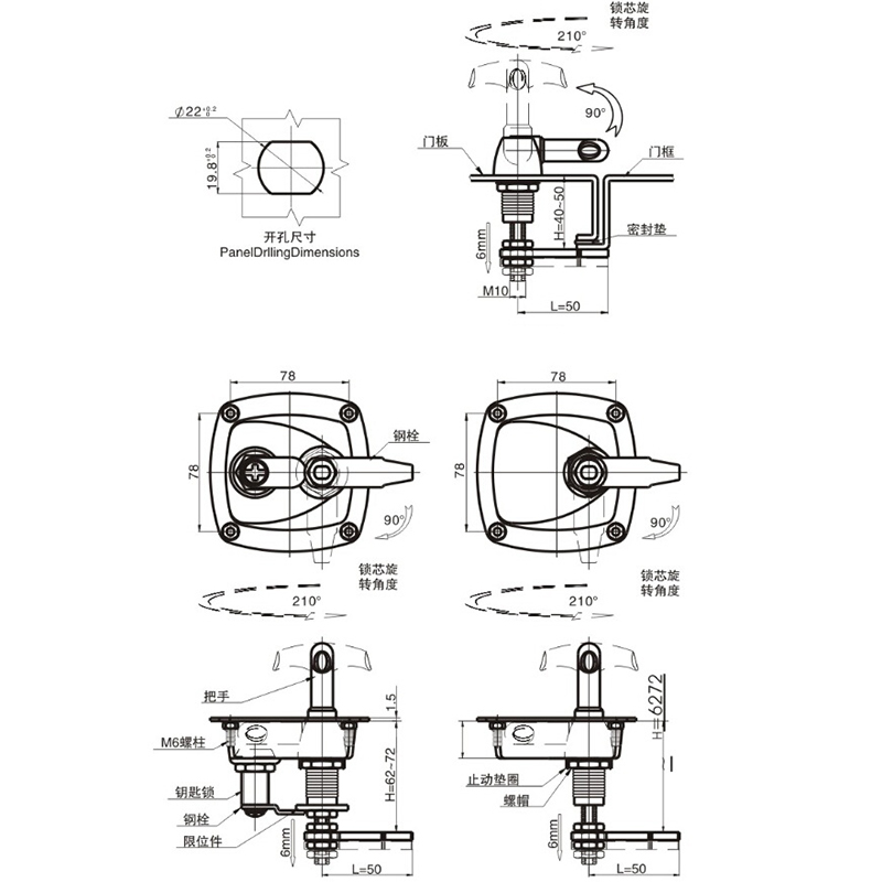 The Feature of N4 Folding T Handle:Heavy-duty locking blade latch with matching key.Ideal replacement for damaged or worn latches.This lock is widely used in daily work. It can protect your locked items safely.The Advantage of N4 Folding T Handle:Provides an excellent solution for safety latches in applications where space is limited.British polished blind hole installation with dust cover.Sturdy and sturdy structure, which can perform well even in harsh working conditions.Application:Network communication equipment, power cabinet,etc.